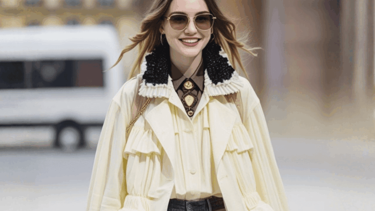 Na passarela, surgiram saias longas em camadas, vestidos fluidos e peças estruturadas combinadas com elementos mais leves, compondo silhuetas que dialogam com o vocabulário boêmio historicamente associado à identidade da maison.