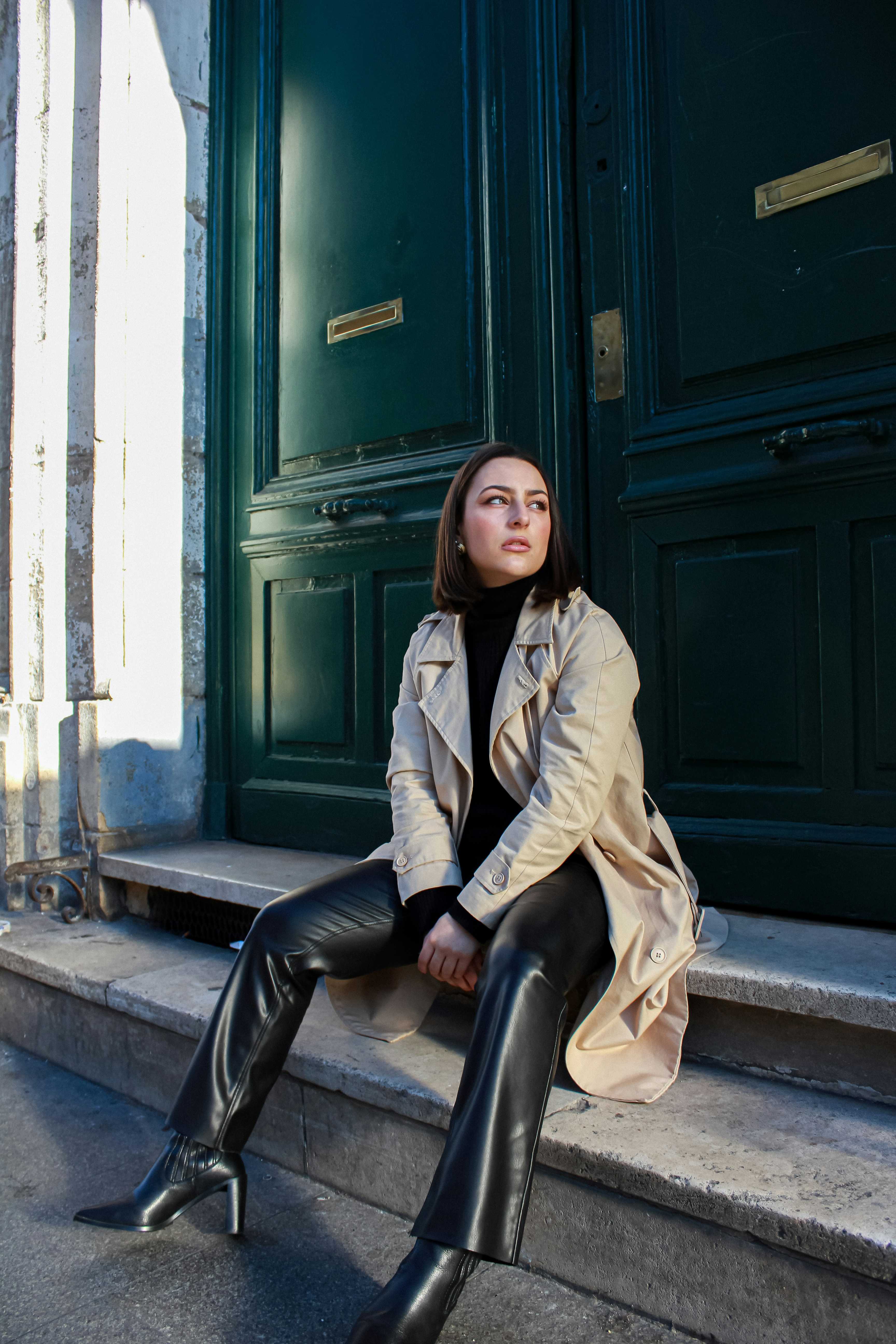 Look 4 Adoramos a saia com efeito espelhado que dá um ar futurista ao look, combine com o trench de couro.